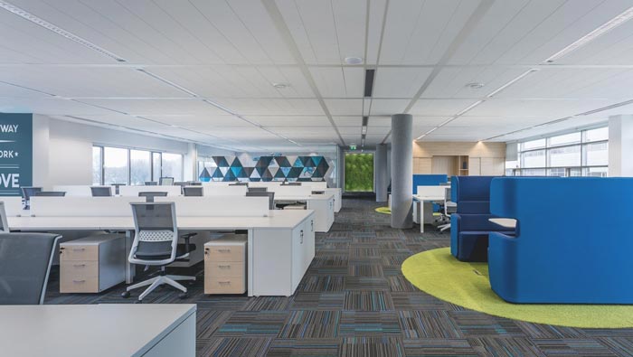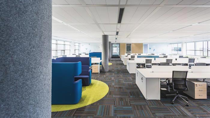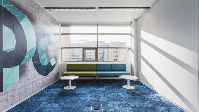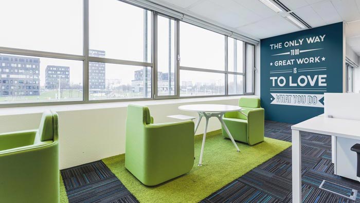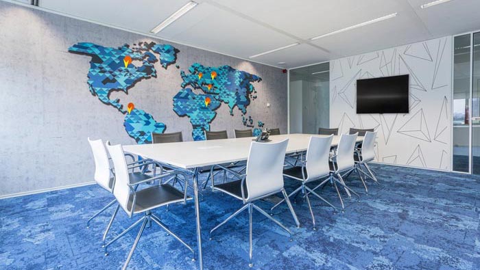大辦公室的設(shè)計:設(shè)計師在設(shè)計的時候,將其安置在一個大的開放空間之中,設(shè)計師采用取中的設(shè)計原則,在設(shè)計師看來取中可以將思緒全部集中在會議區(qū)域,同時地毯設(shè)計師采用了類似海洋的顏色,以此寓意企業(yè)順風(fēng)順?biāo)瑫r這樣的設(shè)計將此處的向心力更加集中于中間部位,不會因為分散導(dǎo)致空間顯得空曠。
