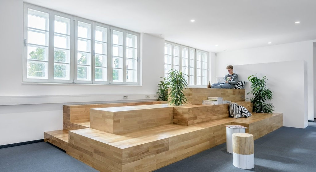 降噪,與大的木制的多層立方體,作為臨時(shí)會(huì)議或頭腦風(fēng)暴的平臺(tái),將成為關(guān)鍵,以避免以前充滿壓力的環(huán)境的陷阱。進(jìn)一步推動(dòng)時(shí)尚,舒適,符合人體工程學(xué)的家具,以及工作空間的多樣性。