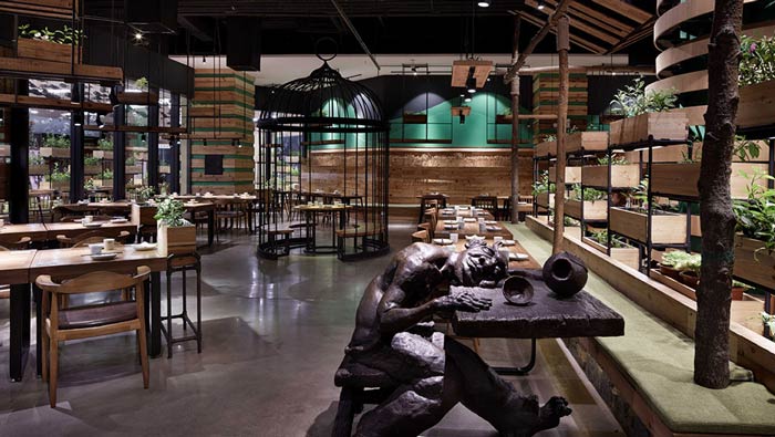 特色生態(tài)餐廳餐區(qū)設(shè)計:這里集結(jié)了藝術(shù)雕像、枯山水、有機(jī)蔬菜吧、有機(jī)大豆石磨區(qū)等等,最后匯集在餐廳的各個區(qū)域,這樣的就餐環(huán)境,讓客戶在就餐時猶如在農(nóng)場之中。