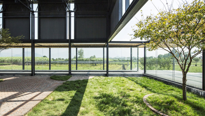 紅糖廠房景觀裝修設計:廠房位于區域的最里面,田園景觀環繞整個廠房,設計師之所以這樣設計,一來是滿足當地的需求,二來是滿足環保的需要,三來是滿足旅游的需要。