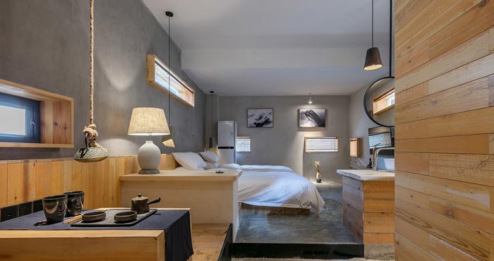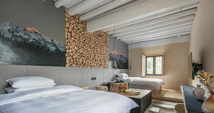 本案簡約民宿設計項目介紹結束,民宿設計加入了東方的禪意元素,然后以古城香格里拉的藏式風格自然過渡,呈現在客戶眼前的是,散發著自然之美的簡約民宿。