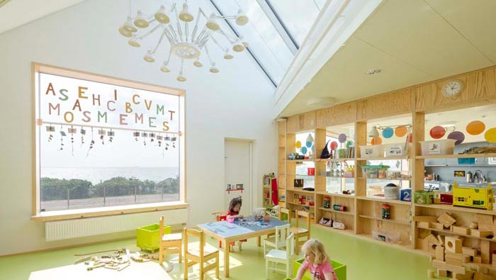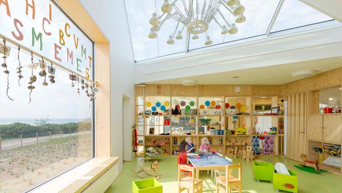 教室采光的設(shè)計(jì):室內(nèi)與室外海洋景觀緊密聯(lián)系,全年都可以提供理想的日光照明條件,讓孩子們?cè)谶@里無(wú)憂無(wú)慮的成長(zhǎng),溫暖的陽(yáng)光見(jiàn)證了孩子的成長(zhǎng),也照開(kāi)了孩子的心,讓孩子們從小學(xué)會(huì)積極向上的生活,為孩子的茁壯成長(zhǎng)打下堅(jiān)實(shí)的基礎(chǔ)。